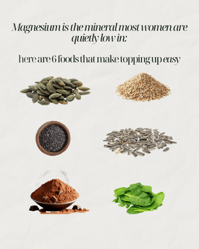 I want to talk about magnesium today because honestly, I think it doesn’t get enough attention, especially when it comes to women’s health, fertility, pregnancy and postpartum. I see so many people running on empty without even realising it, and it shows up as tiredness, muscle cramps, trouble sleeping, mood swings and sometimes even more serious stuff if it’s long term.